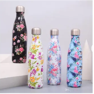 ভ্যাকুয়াম ইনসুলেটেড ডাবল ওয়াল কোলা আকৃতির স্টেইনলেস স্টিল স্পোর্ট পানির বোতল সাথে এয়ার ট্রান্সফার প্রিন্টিং